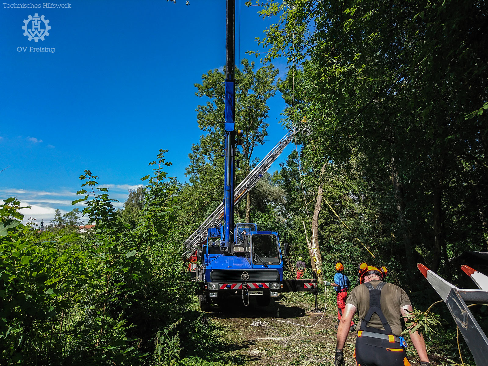Am Samstag, den 29.07.2017, fällten zehn Helfer auf dem Übungsgelände des THW Freising einen Baum, der durch die Unwetter der letzten Wochen stark beschädigt wurde.