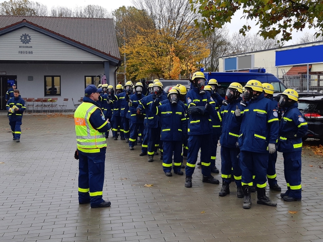 Diese Atemchutzausbildung wurde vom 01.11. bis zum 12.11. im THW Ortsverband Freising durchgeführt. Dabei waren neben 10 Personen aus dem OV Freising auch 20 Einsatzkräfte aus 6 weiteren Ortsverbänden des THW Regionalbereiches München. Den angehenden Atemschutzgeräteträgern wurden von den Ausbildern neben den notwendigen theoretischen Grundlagen auch der praktische Umgang mit Maske-Filter Kombinationen, bzw. den Pressluftatmern vermittelt.