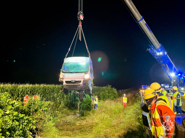 16.07.2024: Dienstag früh ereignete sich während eines Unwetters ein Verkehrsunfall auf der A92. Dabei kam ein Kleintransporter, der im Auftrag der Post unterwegs war, von der Fahrbahn ab, überschlug sich und blieb hinter der Leitplanke liegen. Bei dem Unfall wurde die Schiebetür des Transporters beschädigt und die Ladung wurde zum Teil herausgeschleudert.