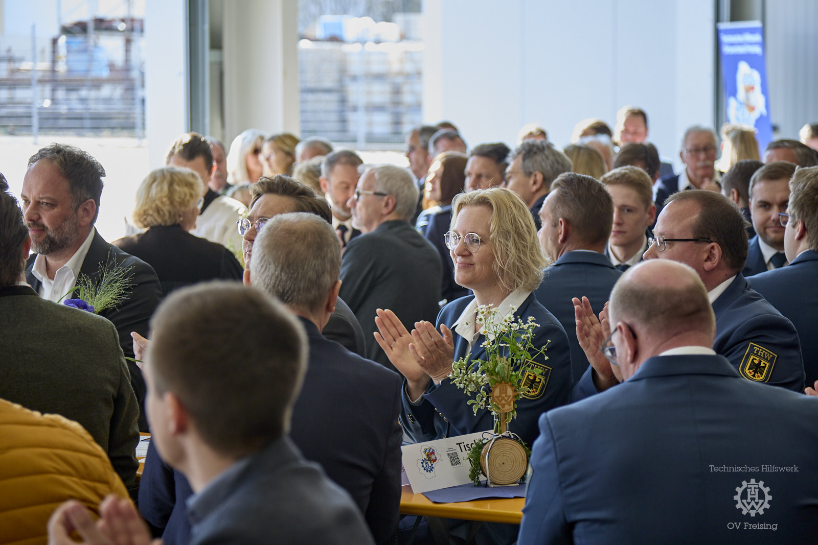Gut 140 Gäste, 80 davon Angehörige des Ortsverbands, hatten sich am Samstag an den liebevoll geschmückten Tischen in der Fahrzeughalle niedergelassen um die Indienststellung von drei neuen Einsatzfahrzeugen und zwei Anhängern zu begleiten. Dazu kamen prominenter Besuch aus Politik, Wirtschaft und Gesellschaft sowie den befreundeten Hilfsorganisationen und aus der THW-Familie: Der Staatsminister für Bundesangelegenheiten und Medien und Leiter der Bayerischen Staatskanzlei, Dr. Florian Herrmann, war ebenso gekommen wie der Landrat des Landkreises Freising, Helmut Petz, der Oberbürgermeister der Großen Kreis- und Universitätsstadt Freising, Tobias Eschenbacher und die beiden Wahlkreisabgeordneten des Deutschen Bundestags, Leon Eckert (Grüne) und Christian Moser (CSU).